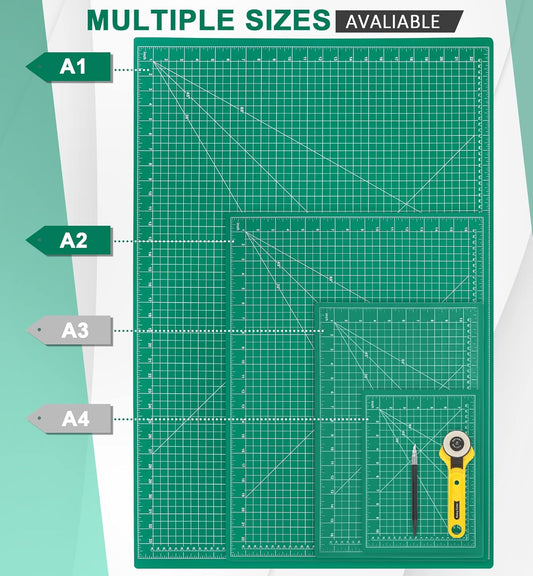 Density-upgraded 24" x 36" Large Self Healing Sewing Mat, Idemeet Rotary Cutting Mat 5 Play Cut Board for Crafts Hobby Project, Scale Size 24" x 36", A1, Green