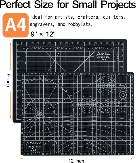 Density-upgraded 9"x12" Self Healing Cutting Mat, Idemeet Rotary Sewing Mat for Crafts, 5-Ply Blade Table Protector Cut Board for Fabric Leather Cutting Quilting Modeling Hobby Project, A4, Black