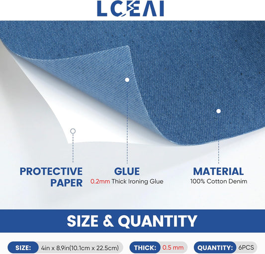 Denim Patches for Inside Jeans - Iron On Patches for Jeans - Jeans Patch for Repairing Pant Holes and Covering Imperfections, 6 Colors, Each Piece Measures 4 in x 8.9 in