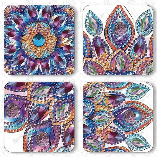 Diamond Art Coasters Kit with Holder, 8 Pcs Diamond Art Coasters for Adults Kids Beginners Crafts Gifts (Starry-Night)