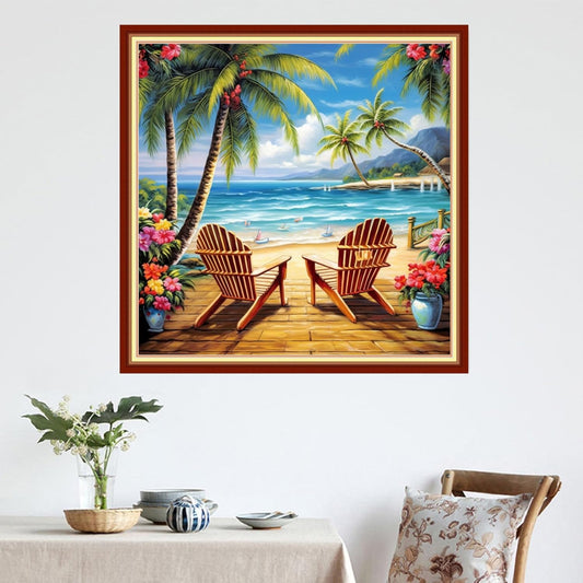 DMCVIVR Stamped Cross Stitch Kits for Adults Beginners Embroidery Kits 11CT Needlepoint Kits Cross Stitch Patterns Embroidery Patterns&Seaside Scenery 18x18 inch