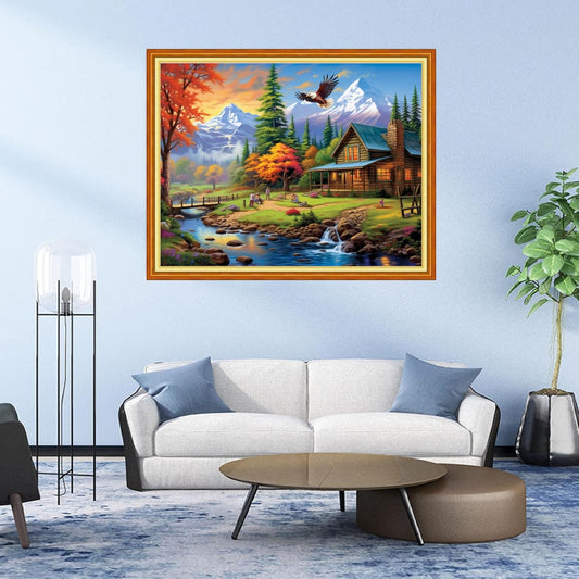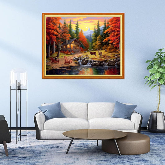 DMCVIVR Stamped Cross Stitch Kits for Adults Beginners Embroidery Kits 11CT Needlepoint Kits Cross Stitch Patterns Embroidery Patterns&Deep Autumn Scenery 16x20 inch