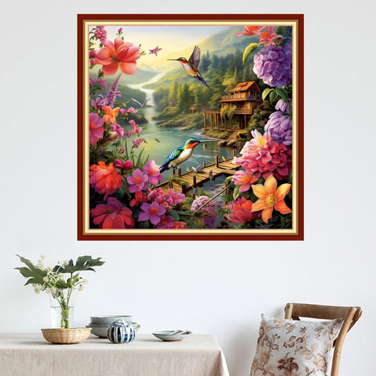 DMCVIVR Stamped Cross Stitch Kits for Adults Beginners Embroidery Kits 11CT Needlepoint Kits Cross Stitch Patterns Embroidery Patterns&Lake Hummingbird 18x18 inch