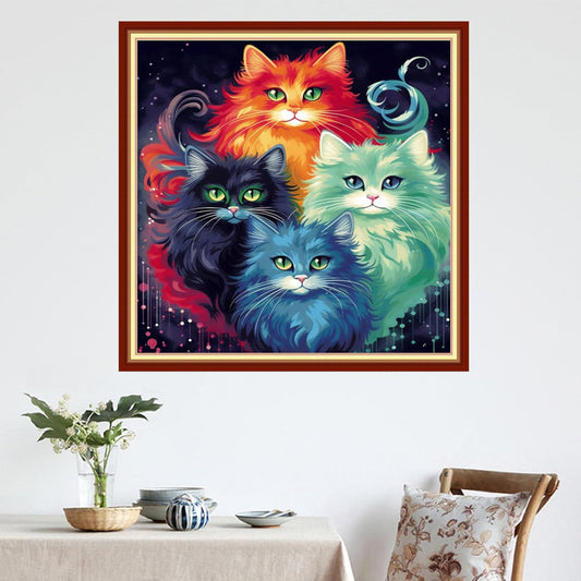 DMCVIVR Stamped Cross Stitch Kits for Adults Beginners Embroidery Kits 11CT Needlepoint Kits Cross Stitch Patterns Embroidery Patterns&Colorful Cat 18x18 inch