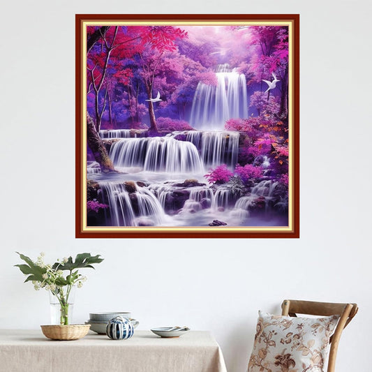 DMCVIVR Stamped Cross Stitch Kits for Adults Beginners Embroidery Kits 11CT Needlepoint Kits Cross Stitch Patterns Embroidery Patterns&Maple Leaf Waterfall 18x18 inch