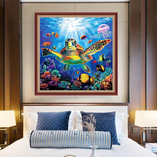 DMCXART Counted Cross Stitch Kits for Adults Needlepoint Kits Unprinted Cross Stitching Embroidery Kit 11CT Cross Stitch Supplies-Turtle Underwater World 18x18 inch