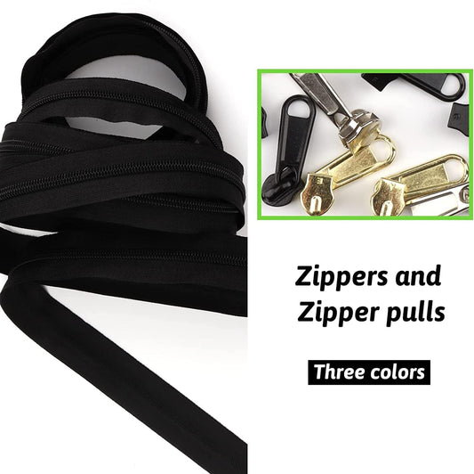 DOITEM 16.5 Yards 3-Piece Assorted Nylon Coil Zippers with 30 Sliders for DIY Tailoring and Crafts, Black