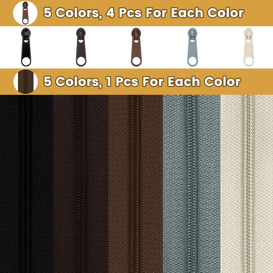DOITEM 22.2 Yards/ 20 m 10 Pieces Assorted Colors #5 Nylon Coil Zippers, Sewing Zippers Endless Zips with 40 Pieces Zipper Sliders Zip Heads for DIY Sewing Tailor Craft Supplies