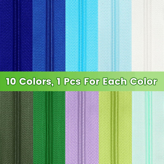 DOITEM 31 Yards 10 Pieces Sewing Zippers #3 Nylon Coil Zippers 10 Colors Assorted Zipper for Sewing with 40 Zipper Sliders for DIY Tailor Sewing Crafts Supplies,