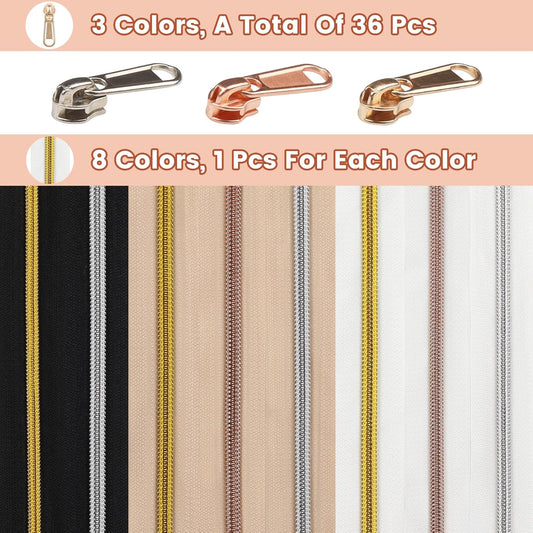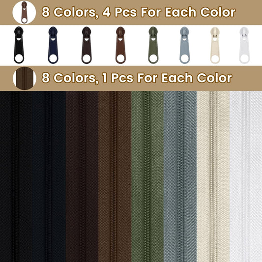 DOITEM 24 Yards 8 Pieces Sewing Zippers #3 Nylon Coil Zippers Assorted Zipper for Sewing with 32 Zipper Sliders for DIY Tailor Sewing Crafts Supplies, 8 Color