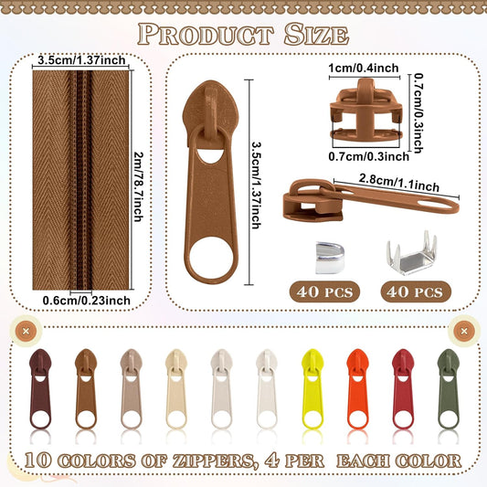 DOITEM 22.2 Yards Zippers 10 Pieces Assorted Colors #5 Nylon Coil Zipper, Sewing Zippers Endless Zips with 40 Pieces Zipper Sliders Zip Heads for DIY Sewing Tailor Craft Supplies