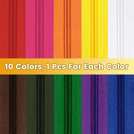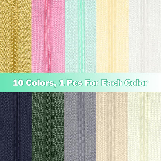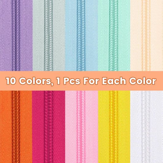 DOITEM 31 Yards 10 Pieces Sewing Zippers #3 Nylon Coil Zippers Assorted Zipper for Sewing with 40 Zipper Sliders for Tailor Sewing Crafts Supplies, 10 Color