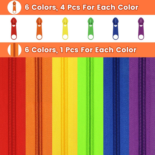 DOITEM 13.5 Yards 6 Pieces Sewing Zippers #5 Nylon Coil Zippers Assorted Zipper for Sewing with 24 Zipper Sliders for DIY Tailor Sewing Crafts Supplies, 6 Colors
