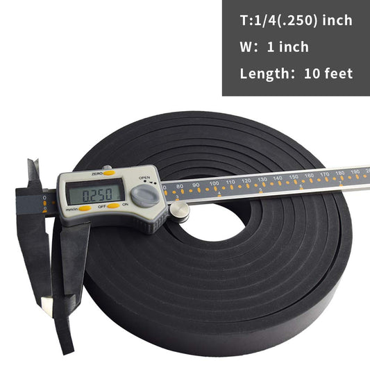 DOBTIM Thick Solid Neoprene Rubber Strips 1/4 (.250)" Thick X 1" Wide X 10' Long, Rubber Sheets, Rolls & Strips Use for Supports, Leveling, Sealing, Bumpers, Protection, Abrasion, Flooring