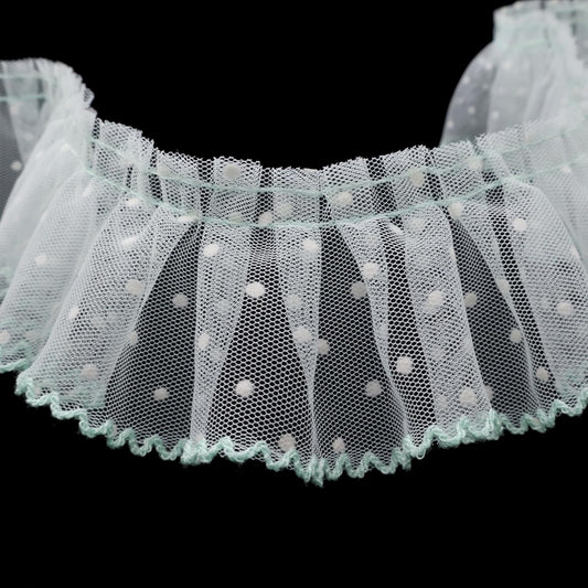 Dots Lace Ruffle Trim for Sew, Crafts 2.4" x5yd Single Layer Pleated Edge Lace Ribbon (Light Green)