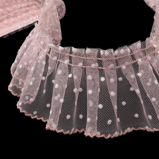 Dots Lace Ruffle Trim for Sew, Crafts 2.4" x5yd Single Layer Pleated Edge Lace Ribbon (Shellpink)