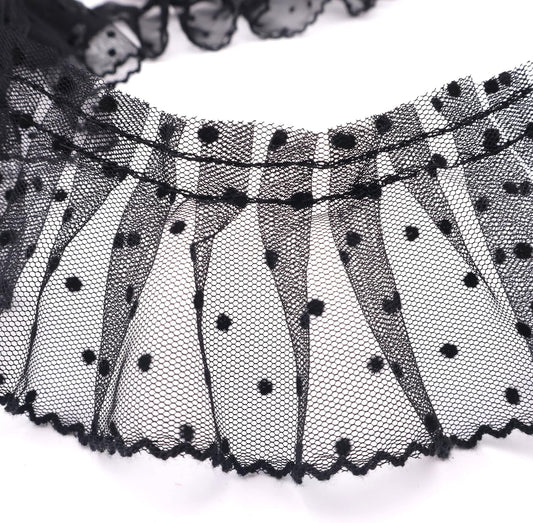 Dots Lace Ruffle Trim for Sew, Crafts 2.4" x5yd Single Layer Pleated Edge Lace Ribbon (Black)