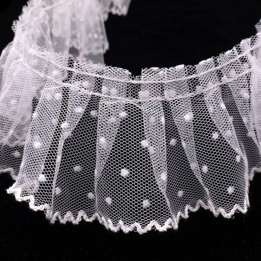Dots Lace Ruffle Trim for Sew, Crafts 2.4" x5yd Single Layer Pleated Edge Lace Ribbon (White)