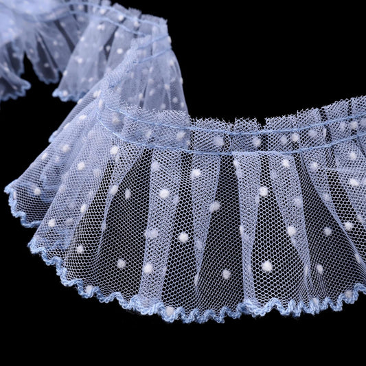 Dots Lace Ruffle Trim for Sew, Crafts 2.4" x5yd Single Layer Pleated Edge Lace Ribbon (Blue)