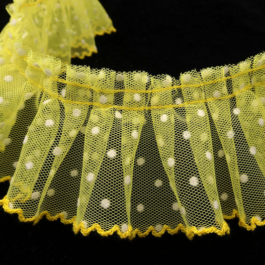 Dots Lace Ruffle Trim for Sew, Crafts 2.4" x5yd Single Layer Pleated Edge Lace Ribbon (Yellow)
