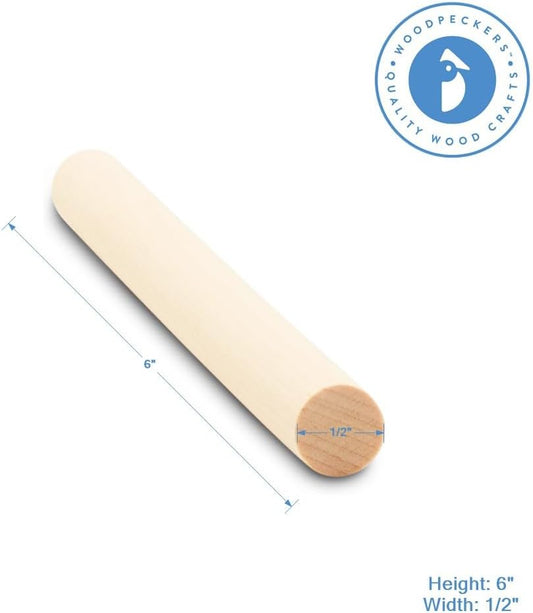 Dowel Rods Wood Sticks Wooden Dowel Rods - 1/2 x 6 Inch Unfinished Hardwood Sticks - for Crafts and DIYers - 50 Pieces by Woodpeckers