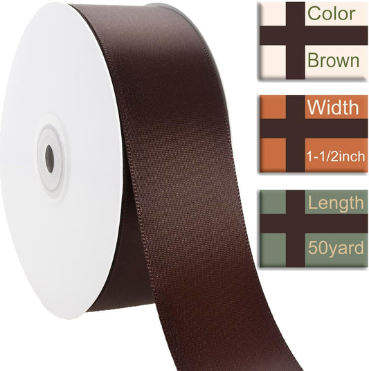 1 1/2 Inch Brown Solid Satin Ribbon, 50 Yards Craft Fabric Ribbon for Gift Wrapping Floral Bouquets Wedding Party Decoration