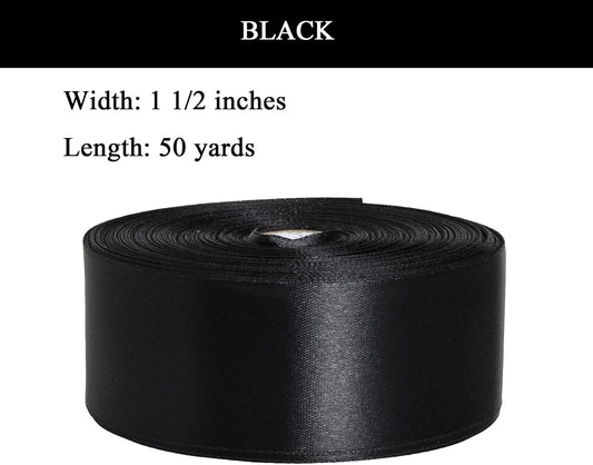 1 1/2 Inch Black Solid Satin Ribbon, 50 Yards Craft Fabric Ribbon for Gift Wrapping Floral Bouquets Wedding Party Decoration
