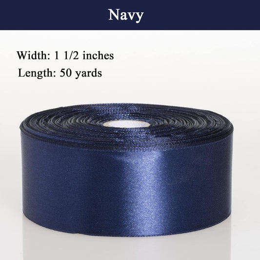 1 1/2 Inch Navy Solid Satin Ribbon, 50 Yards Craft Fabric Ribbon for Gift Wrapping Floral Bouquets Wedding Party Decoration