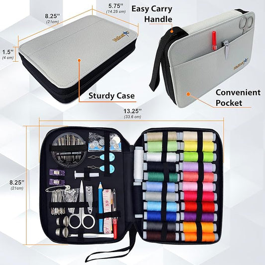 Easy to Use Sewing Kit for Adults and Kids - Needle and Thread Kit with Sewing Supplies and Accessories for Fixing Buttons & Small Repairs, Basic Travel Mending Set for Beginners, Light Grey
