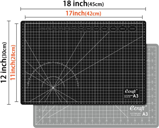Ecraft Self Healing Cutting Mat:18"x12" Double Sided 5-Ply Hobby Mat, A3 Rotary Cutting Sewing Mat for Crafts, Fabric,Sewing,Quilting,Scrapbooking,Projects,Grey/Black
