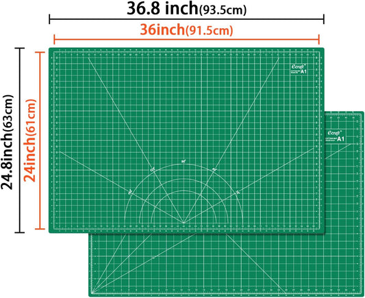 Ecraft 2-Pack 24"x36" Self-Healing Sewing Mat: Large Double-Sided Green 5-Ply Hobby Mat, A1 Rotary Cutting Mat for Sewing, Quilting & Fabric Crafts