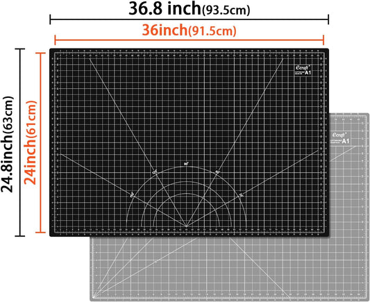 Ecraft Large Self Healing Cutting Mat: 24" x 36" Double Sided 5-Ply Hobby Mat, A1 Rotary Cutting Sewing Mat for Crafts, Fabric,Sewing,Quilting,Scrapbooking,Projects,Grey/Black
