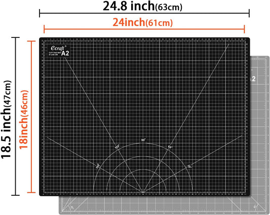 Ecraft Self Healing Cutting Mat:18" x 24" Double Sided 5-Ply Hobby Mat, A2 Rotary Cutting Sewing Mat for Crafts, Fabric,Sewing,Quilting,Scrapbooking,Projects,Grey/Black