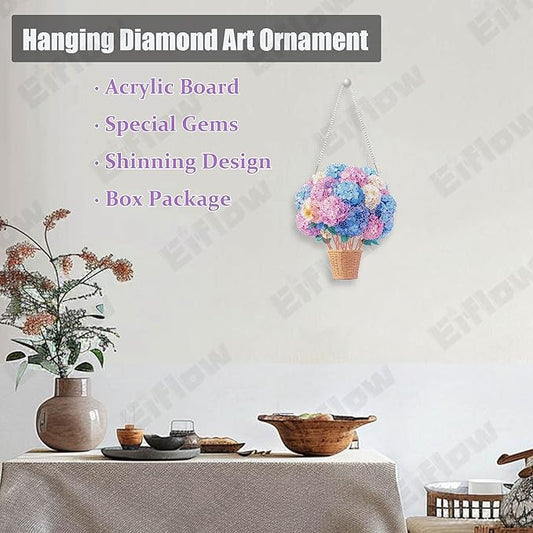 Eiflow Acrylic Diamond Art Hanging Kit for Adults Hydrangea Flower Balloon, DIY Diamonds Painting Door Hanger Board Kit, Special Crystal Diamond Art Painting Pendant Ornament