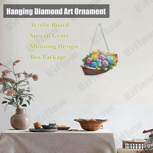 Eiflow Acrylic Diamond Art Hanging Ornament Kit for Adults Hydrangea Flower, DIY Diamonds Painting Door Hanger Board Kit, Special Crystal Diamond Art Painting Pendant