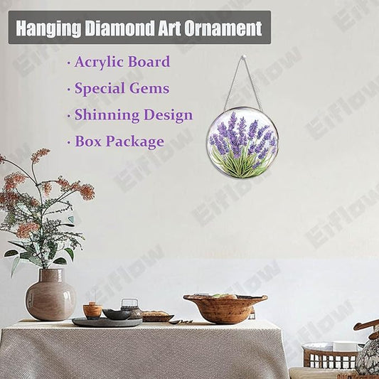 Eiflow Hanging Diamond Art Kit for Adults Lavender, Acrylic Diamonds Painting Board Kit Purple Flower, DIY Gem Art Pendant Ornament