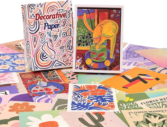 emmoolife 300 Sheets Aesthetic Scrapbook Paper, Retro Boho Pastel Wall Collage Scrapbooking Supplies Craft Decorative Papers Abstract Art Hippie Pattern Room Fashion Decor Paper for Card Making Gift