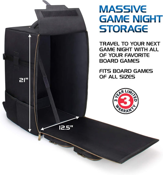 ENHANCE Board Game Backpack - Reinforced Rigid Board Game Storage with Padded Shoulder Straps, Carrying Handle, and Accessories Pockets for Dice, Cards, More - Fits and Protects Tabletop Adventures