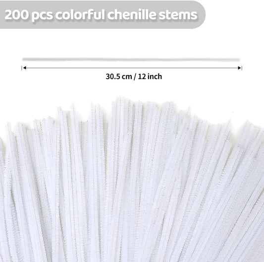 Eppingwin 200pcs Pipe Cleaners, White Pipe Cleaners Craft Supplies,Chenille Stems for DIY Arts Crafts Project(White)