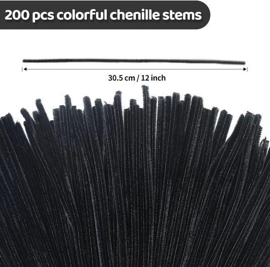 Eppingwin 200pcs Pipe Cleaners, Black Pipe Cleaners Craft Supplies,Chenille Stems for DIY Arts Crafts Project(Black)