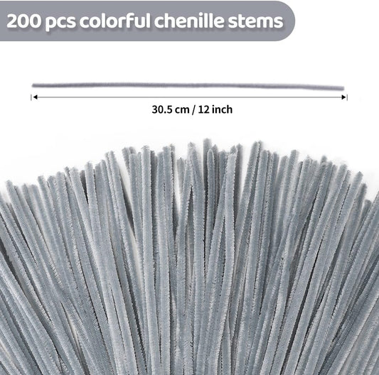 Eppingwin 200pcs Pipe Cleaners, Grey Pipe Cleaners Craft Supplies,Chenille Stems for DIY Arts Crafts Project(Grey)