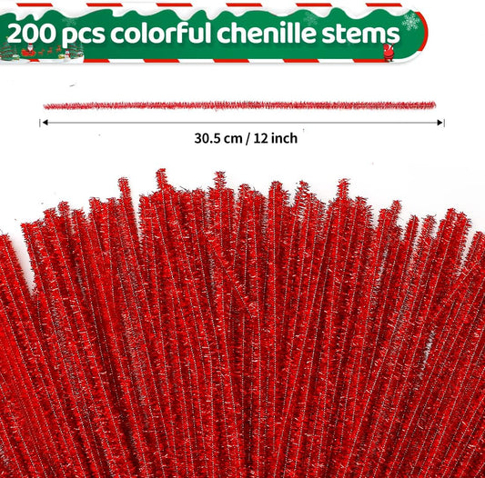 Eppingwin 200pcs Pipe Cleaners, Glitter Red Pipe Cleaners Craft Supplies,Chenille Stems for DIY Arts Crafts Project(Glitter Red)