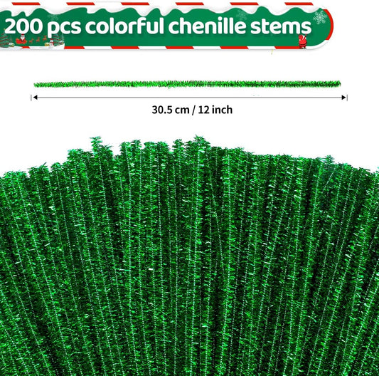 Eppingwin 200pcs Pipe Cleaners, Glitter Green Pipe Cleaners Craft Supplies,Chenille Stems for DIY Arts Crafts Project(Glitter Green)