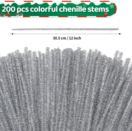 Eppingwin 200pcs Pipe Cleaners, Glitter Silver Pipe Cleaners Craft Supplies,Chenille Stems for DIY Arts Crafts Project(Glitter Silver)