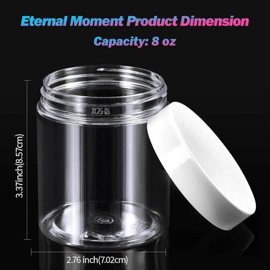 Eternal Moment 36 Pack 8 OZ Plastic Jars Round Clear Cosmetic Container Jars with White Lids, Perfect for Lotion, Slime,Cream, Ointments, Makeup, Eye Shadow, Samples, Pot, Travel Storage