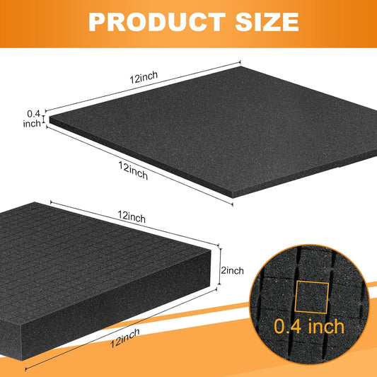 Eunice 4Pcs 12 x 12 x 0.4 Inch Polyurethane Foam Sheets & 4Pcs 12 x 12 x 2 Inch Cuttable Foam Inserts for Cases, Packing Foam Pads for Tool Box, Camera Storage and Crafts
