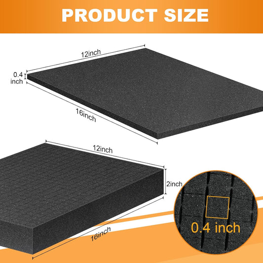 Eunice 4Pcs 16 x 12 x 0.4 Inch Polyurethane Foam Sheets & 4Pcs 16 x 12 x 2 Inch Cuttable Foam Inserts for Cases, Packing Foam Pads for Tool Box, Camera Storage and Crafts