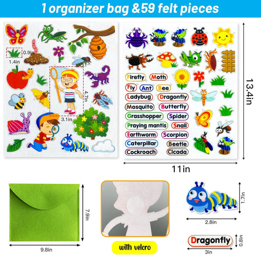 Felt Flannel Board Story Pieces for Toddlers Preschool,Kids Interactive Storytelling Teaching Play Kits for Flannel Board,with Words Felt Pieces(Insect Butterfly)
