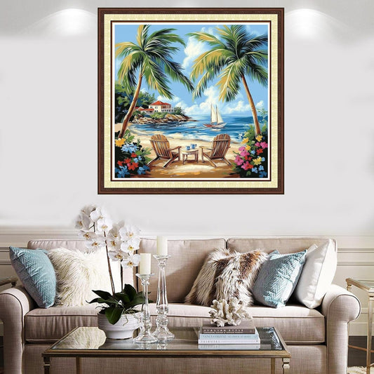 Findvoor Counted Cross Stitch Kits for Adults Full Range of Cross Stitching Embroidery Unprinted Pattern for Beginners, 11CT Needlepoint Kit Patterns Embroidery Kits-Seaside Scenery 18x18 inch