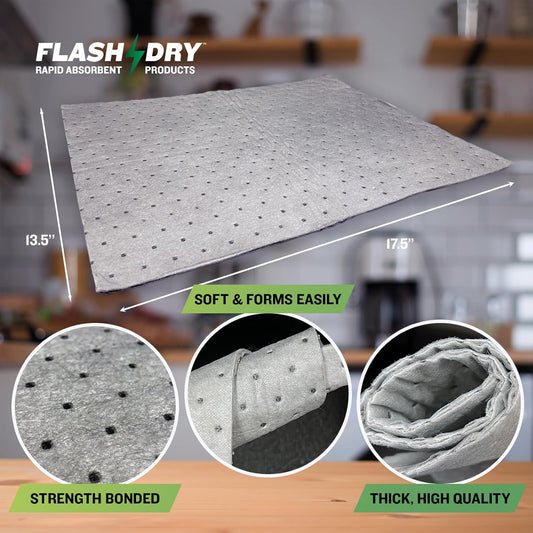 FlashDry - Universal Spill Absorbent Pads | 17.5” x 13.5” x 2mm Oil and All Purpose Premium Liquid Pads - 200 Pads in Total